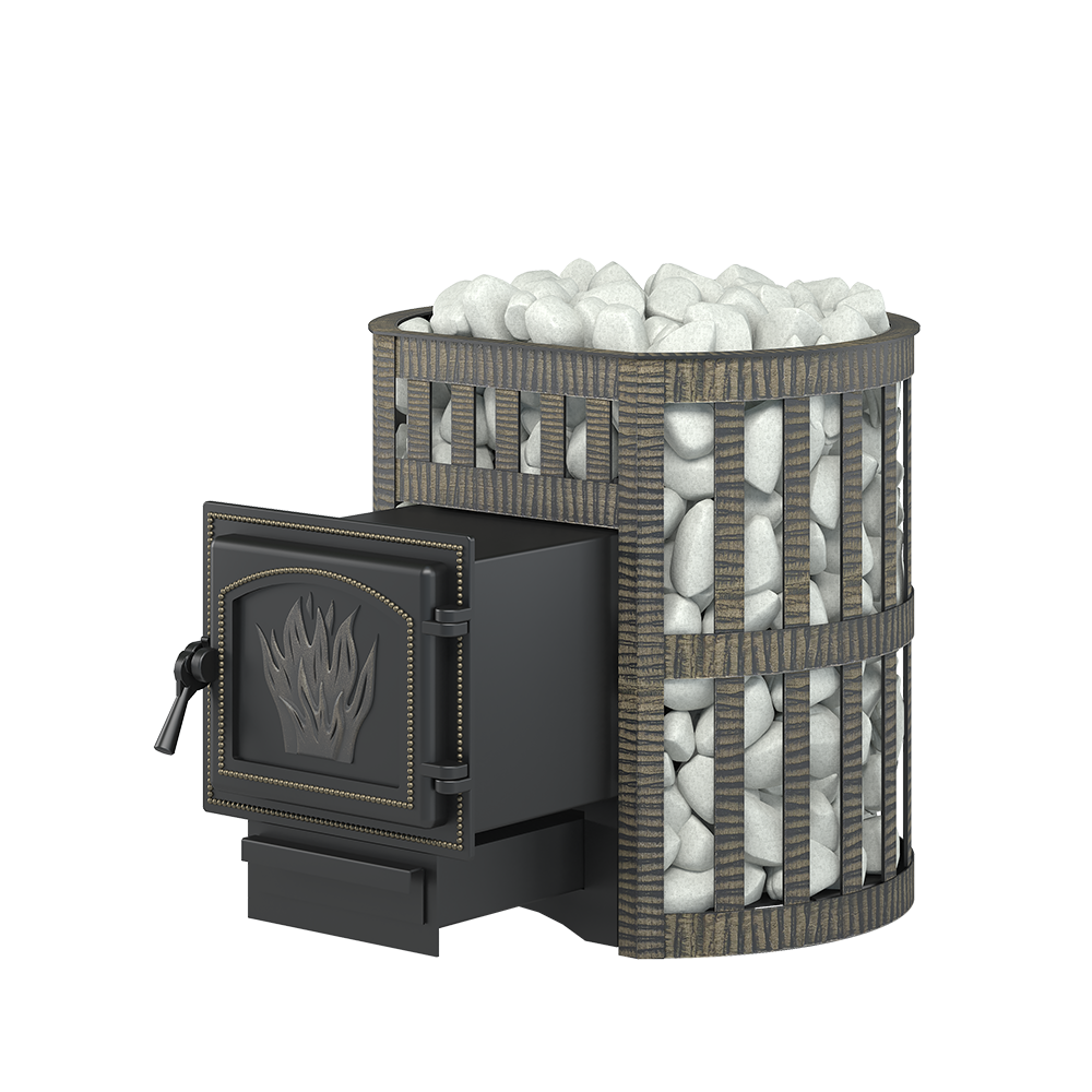 Печь для бани Везувий Легенда Ковка 12 (261) имеет сетчатый кожух-конвектор, выполненный из металлической текстурированной полосы, покрашенной термостойкой краской и покрытой патиной Бронза. Закладка камнем в таком кожухе позволяет в разы уменьшить излучение, получаемое от металла печи, при этом камень прекрасно аккумулирует тепло и сохраняет его на протяжении длительного времени. Конструкция печи Везувий рассчитана на установку в парильном помещении с выходом топки в смежное помещение. Глухая чугунная дверка 261 в печи надежна и долговечна в эксплуатации.