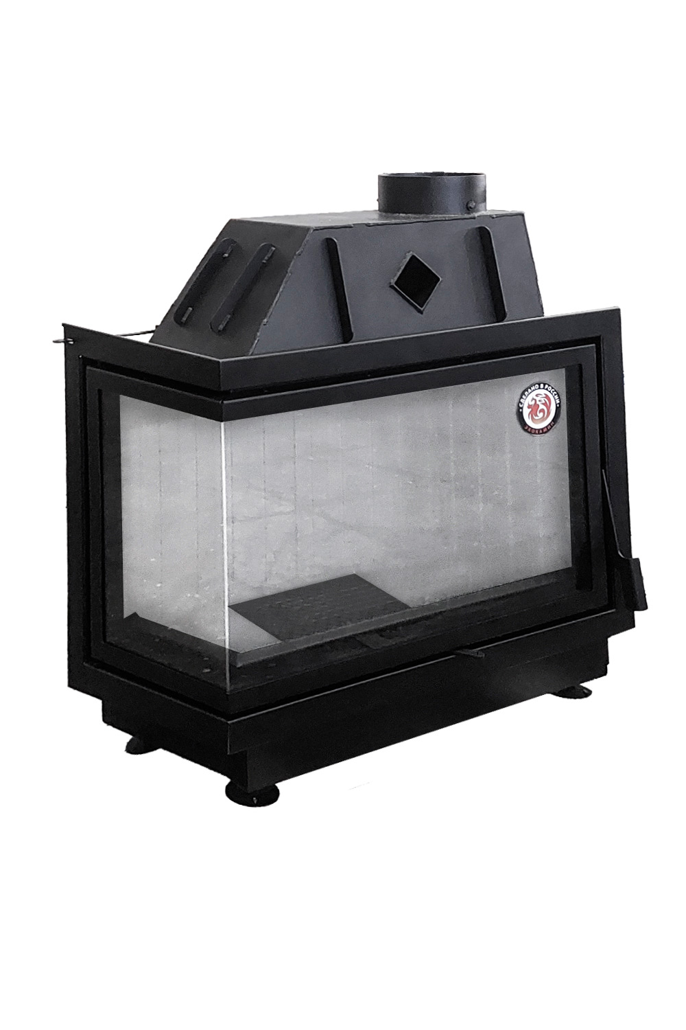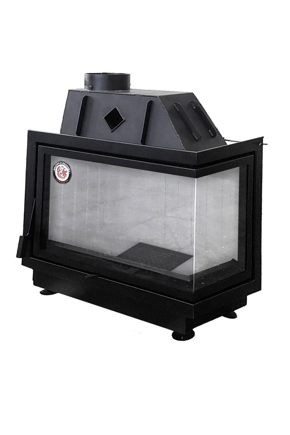 Цельносварной стальной корпус, футерованный литьевым шамотом. Чугунные: шибер, колосник, патрубок. Вторичный дожиг. Система очистки стекла. Система подачи воздуха "из вне". Встроенная шиберная заслонка на гибкой тяге.
