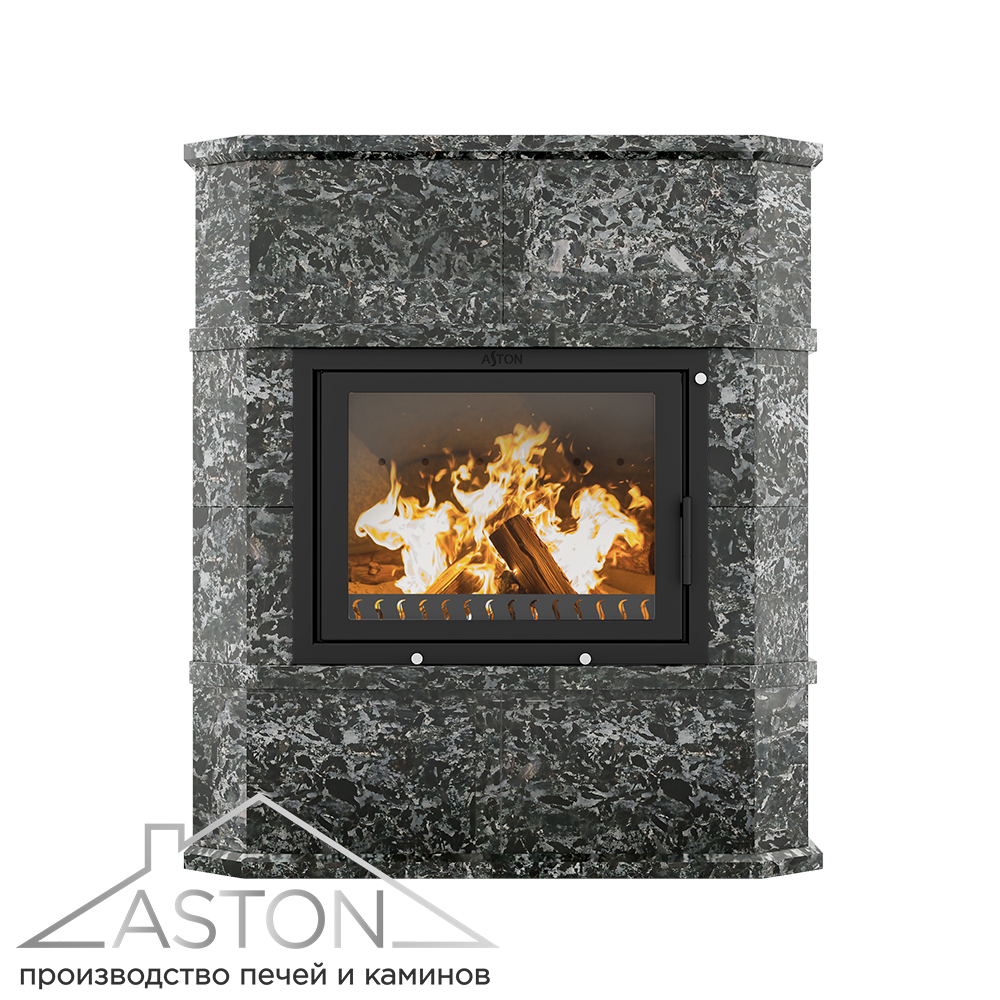 Камины облицованы натуральным камнем(на выбор: Пироксенит/Талькохлорит/Амфиболит) толщиной 40мм, который обладает невероятными теплоаккумулирующими свойствами. По своей теплопроводности и теплоёмкости этот камень в два с половиной раза превосходит привычный кирпич. Натуральный камень очень эффективно нагревается и долго держит тепло, постепенно передавая его в помещение.