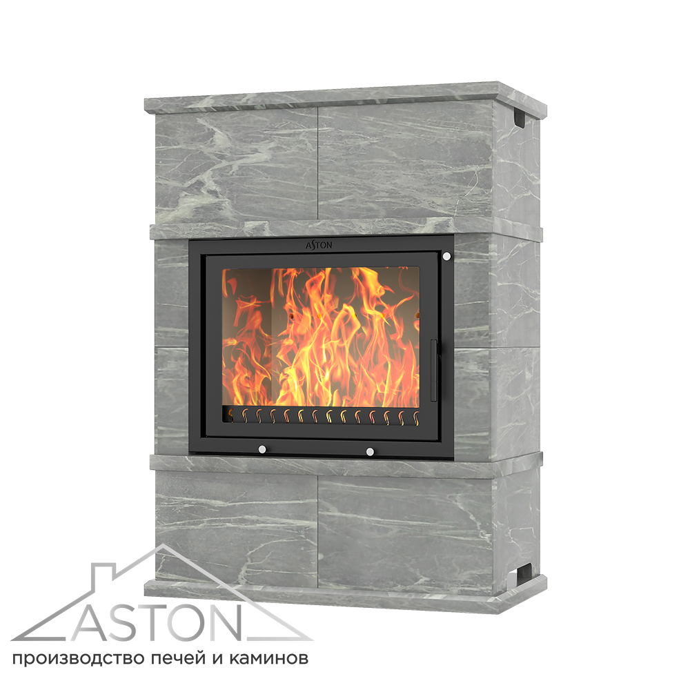 Топка Астон 700 внутри облицовки размещается на подставке. Топка, подставка и облицовка отлично походят друг к другу и не требуют дополнительной подгонки. Свободное пространство между топкой и облицовкой предназначено для движения нагретого воздуха. Именно за счёт конвекции быстро нагревается пространство, что уже в первые минуты работы топки обеспечивает тепло в помещении.