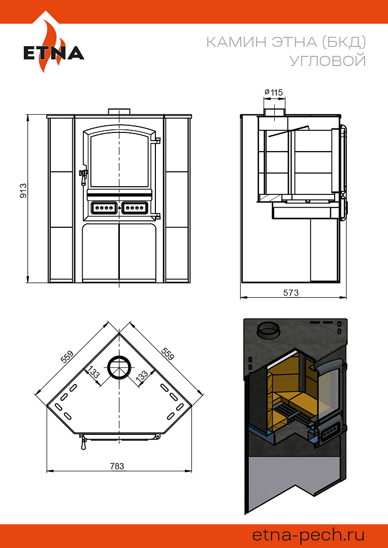 Камин ЭТНА (БКД) угловой Ø 115мм