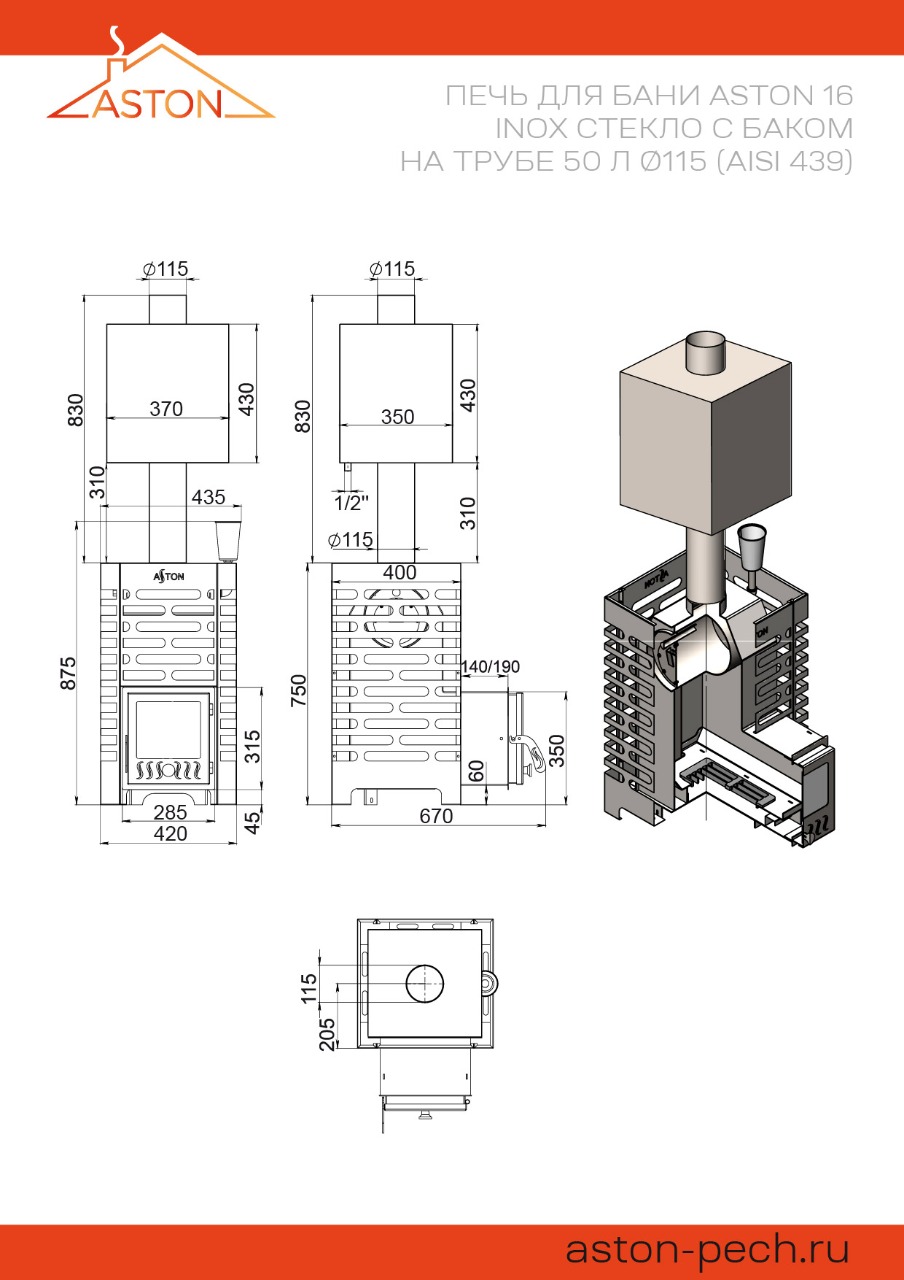Печь АСТОН (ASTON) из нержавеющий стали марки AISI 430 устойчива к окислению и прогару.