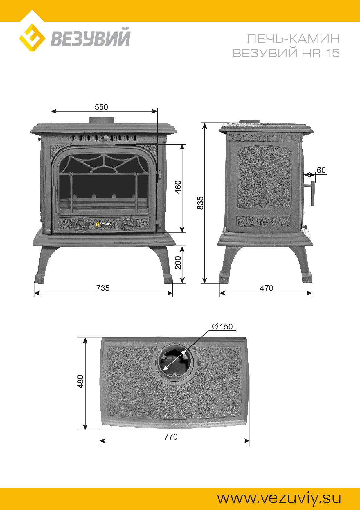 Печь-камин Везувий HR-15 изготовлена из качественного жаростойкого чугуна с толщиной стенок 6-8 мм..