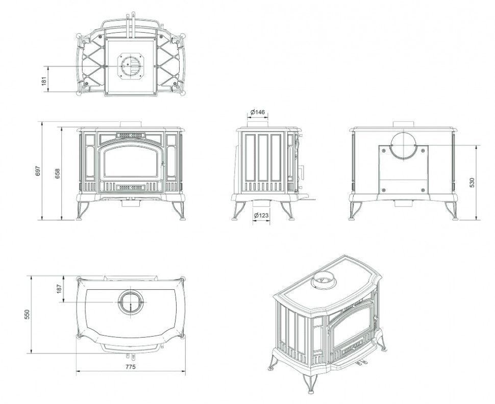 Простота очистки и эксплуатации — зольный ящик, холодная ручка, регулируемое отверстие для дымохода (сверху/сзади).