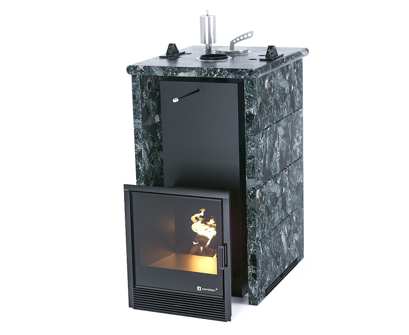 Печи ИзиСтим выполнены из жаропрочной нержавеющей стали AISI 430 4-6мм, обладают высокопрочной особо усиленной конструкцией печи и уникальным парогенератором для получения качественного мелкодисперсного легкого пара. Топочное пространство в печах дополнительно усилено жаропрочными защитными экранами из нержавеющей стали толщиной 4 мм. Все модели печей ИзиСтим можно изготовить на любой вкус: с закрытым или открытым верхом, боковым подключением, в трехстороннем или полноценном кожухе. Также во всех моделях печей для русской бани используются 3 вида камня для облицовки: талькохлорит, змеевик, пироксенит.