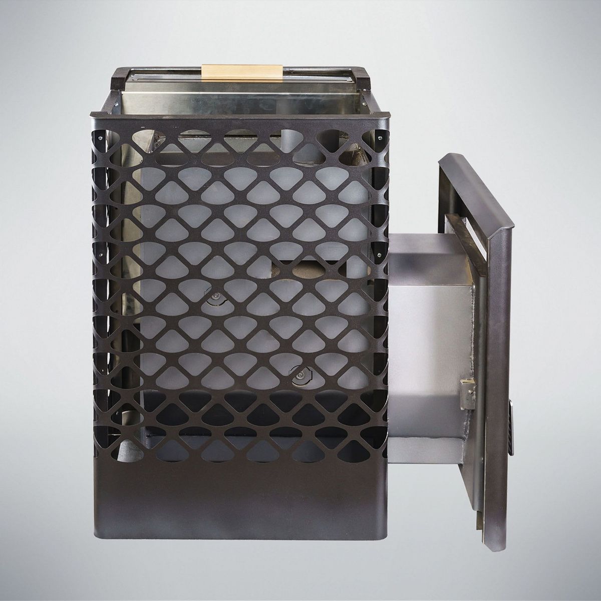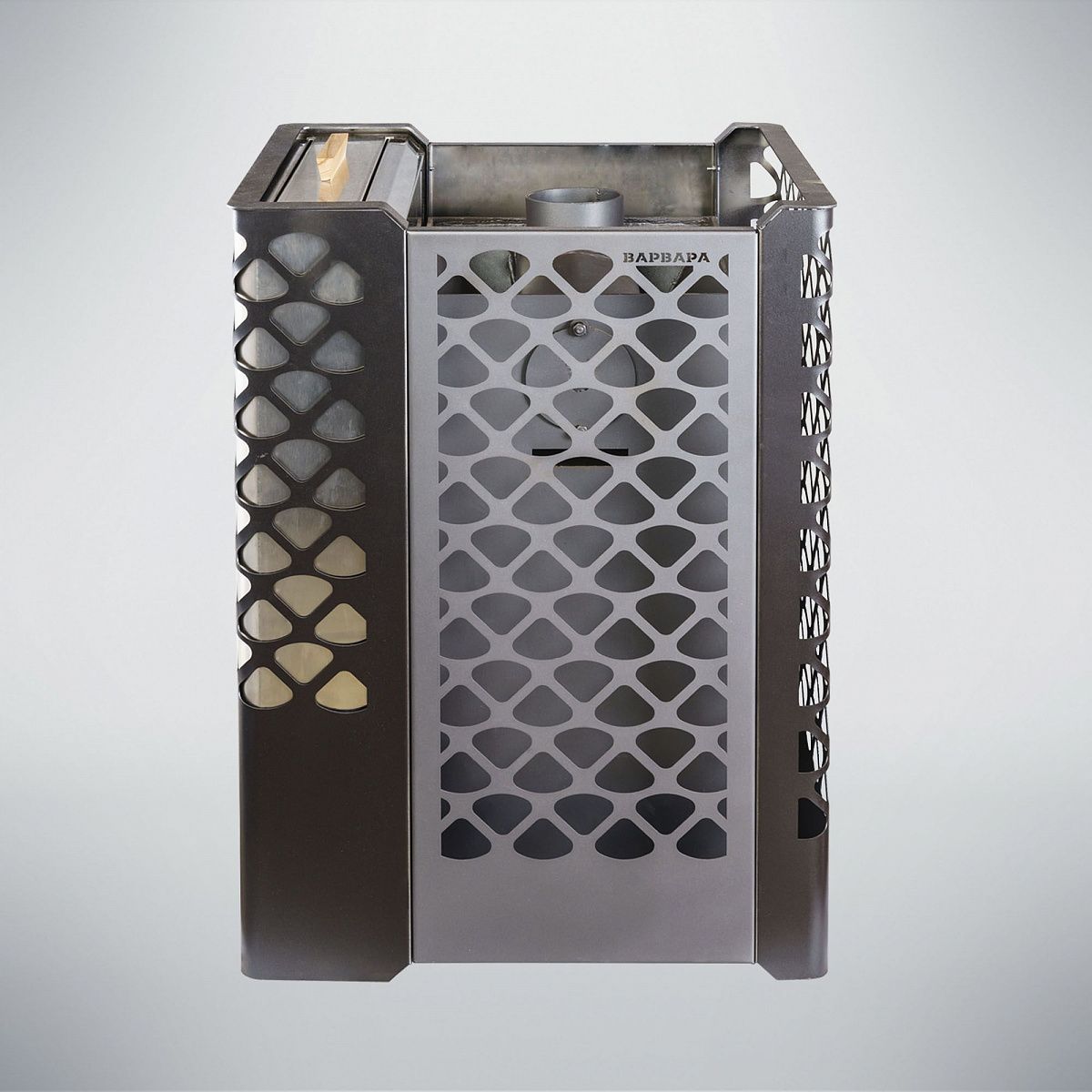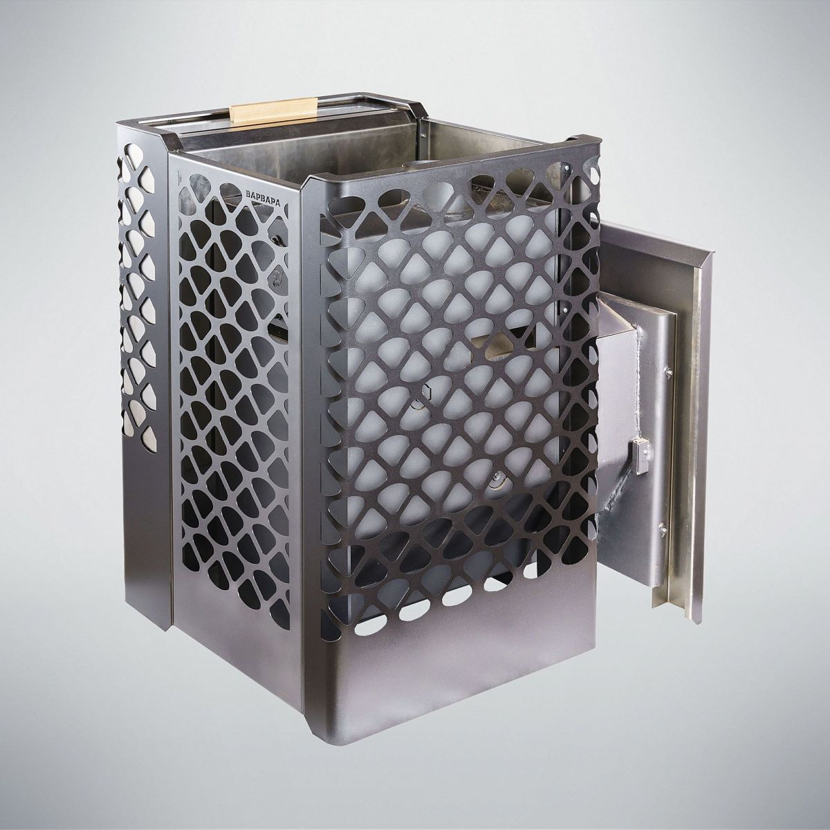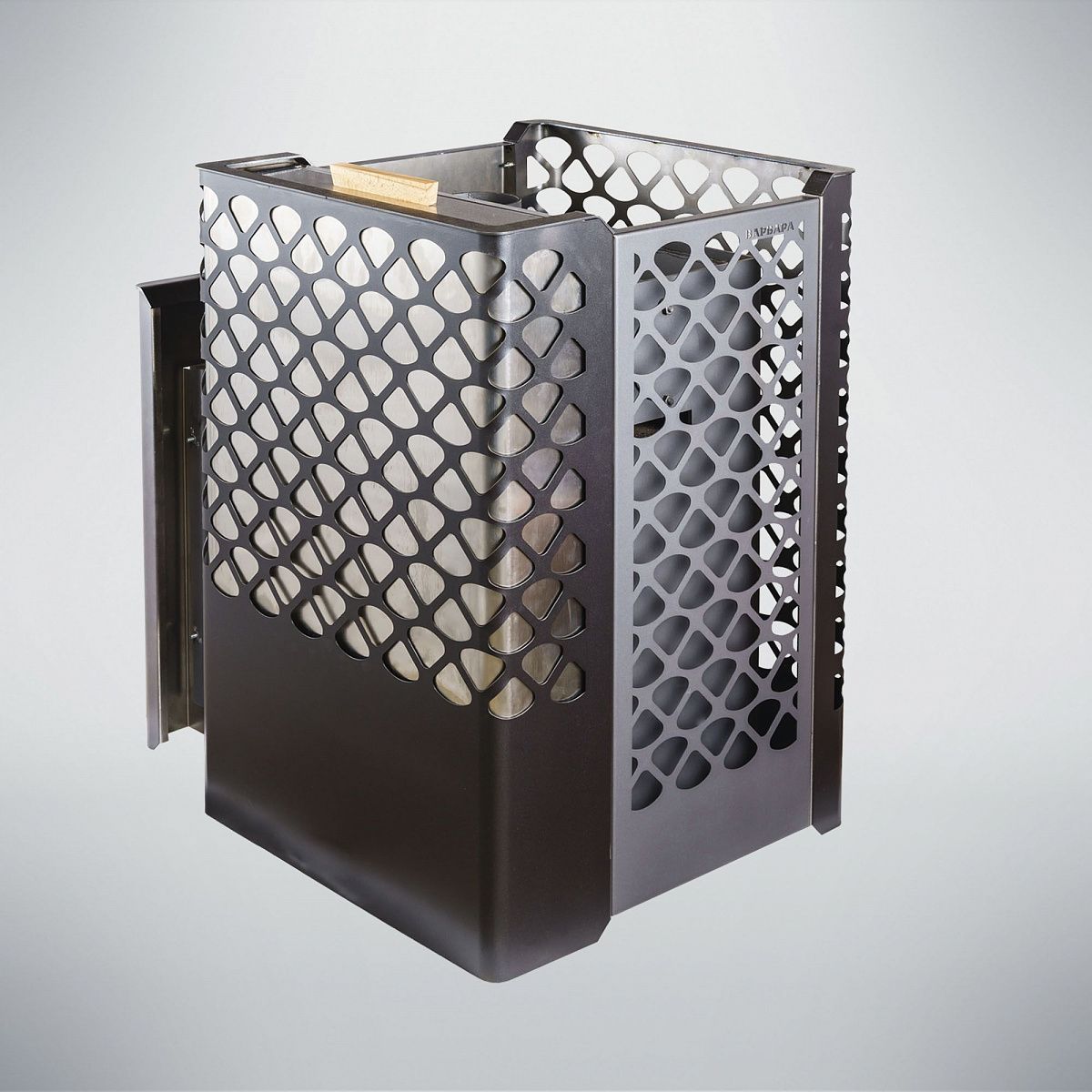 Печь для бани Варвара Грация небольшая, но очень эффективная! Печь имеет компактные размеры, что дает ей возможность быть установленной в небольших помещениях. Печь имеет сетчатый кожух под закладку камнями. Панорамная дверка со стеклом в данной модели печи позволит наблюдать за огнем из комнаты отдыха.
