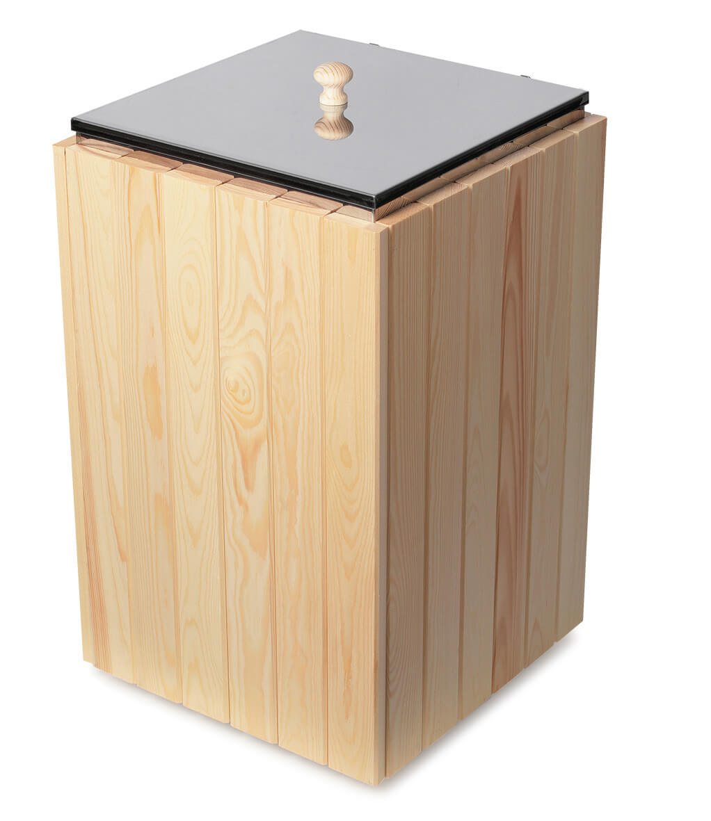 На дне изделия находится перфорированная решетка, препятствующая погружению веников в воду.